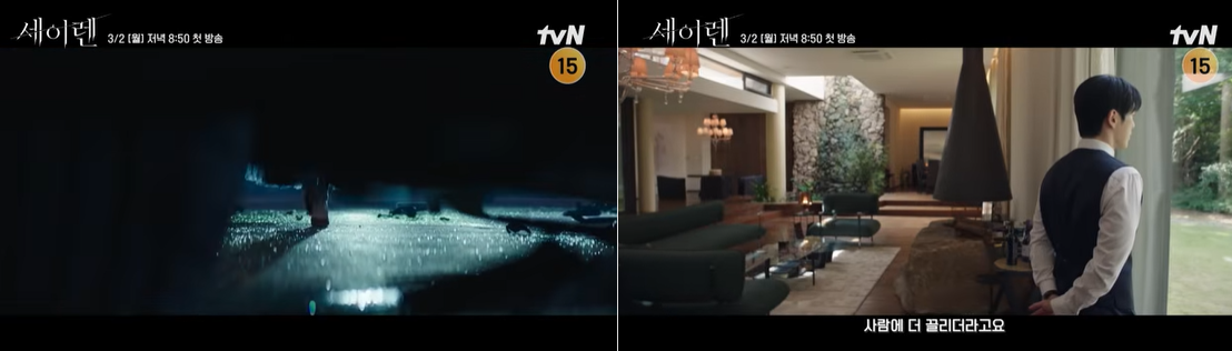 차가운 갤러리 공간, 화려한 펜트하우스, 서울의 밤 풍경이 모두 ‘세이렌’이라는 제목과 잘 어울려.